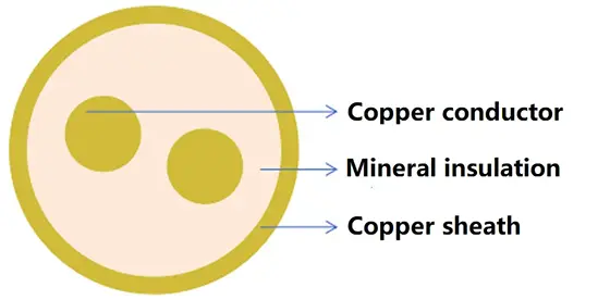 Τα καλώδια με μόνωση ορυκτών αποτελούνται από αγωγό χαλκού, μόνωση ορυκτών σκόνης οξειδίου του μαγνησίου και θήκη χαλκού. Όταν χρησιμοποιούνται καλώδια σε εργοστάσια όπου ο χαλκός είναι διαβρωτικός, μπορεί να προστεθεί ένα εξωτερικό στρώμα πολυβινυλοχλωριδίου (PVC). Σε κτίρια ή υπόγειες τοποθεσίες όπου η αισθητική ή η εύκολη προσβασιμότητα είναι σημαντικές για το καλώδιο, μπορεί να προστεθεί μια εξωτερική θήκη χωρίς αλογόνο, χαμηλής κατανάλωσης καπνού.