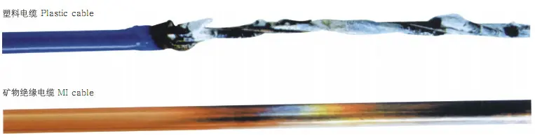Τα καλώδια με μόνωση ορυκτών δεν παρουσίασαν ουσιαστικά καμία αλλαγή μετά τη δοκιμή αντοχής στη φωτιά. Τα καλώδια με οργανική μόνωση εμφάνισαν εμφανή ενανθράκωση.